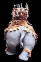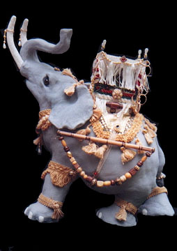 Forbidden represents the meeting of cultures. An African elephant is dressed with Indian decoration and carries two people of diverse backgrounds.