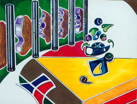 One of my few attempts at abstraction, the space between each object represents the time and physical distance sometimes required to organize our thoughts and emotions in an overall chaotic situation.